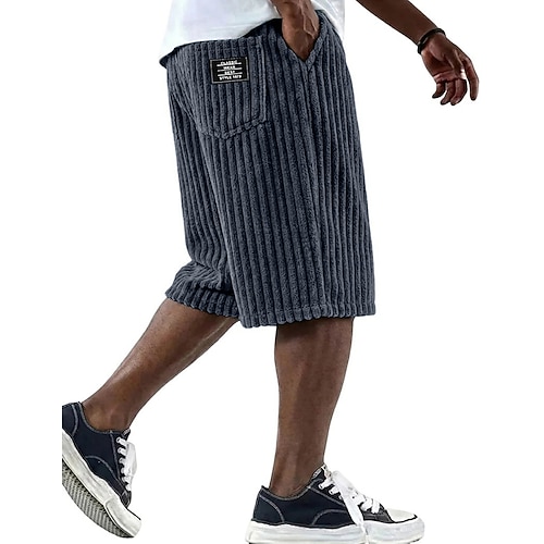 Per uomo Shorts Pantaloncini casual Pantaloncini di velluto a coste Tasca Elastico in vita Semplice Traspirante Lunghezza al ginocchio All'aperto Vacanza Abbigliamento quotidiano Vacanza Moda Nero