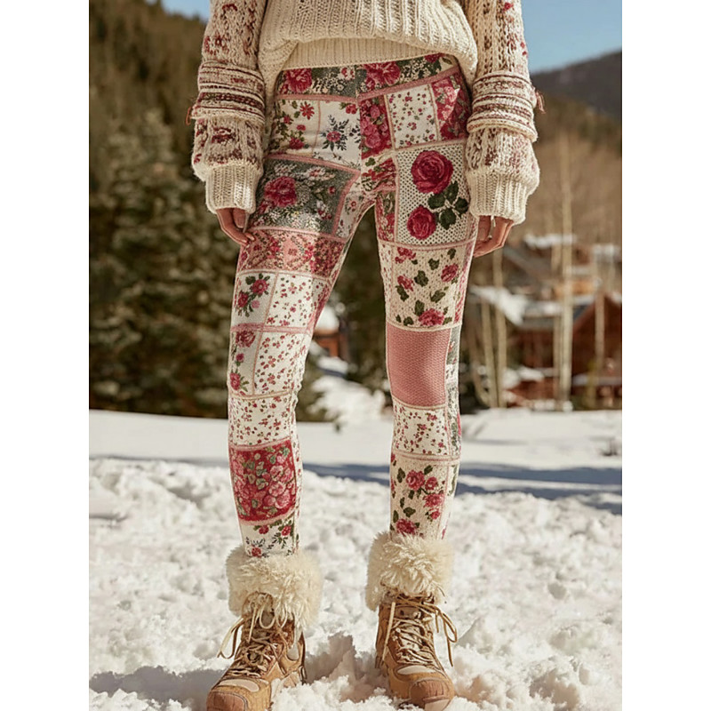 Women's Leggings Cozy Leggings Vacation Vintage Ethnic Style Full Length High Waist Floral Plaid Printing Comfortable Stretchy Vacation Casual Daily Pink Spring Fall Winter Slim Fit