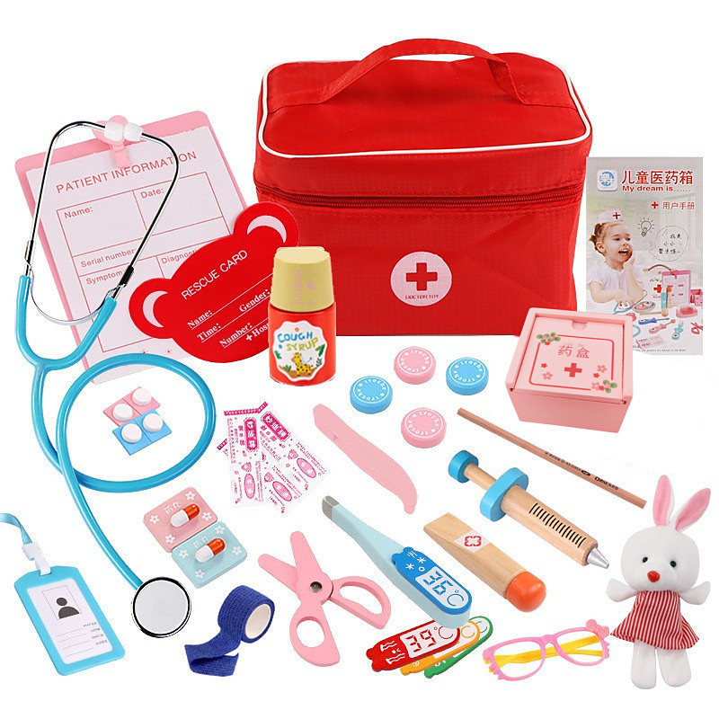 Role Play Doctor Dentist Set - Wooden Medical Kit with Stethoscope Syringe Teeth Model - Fun for Ages 3 Christmas Gift