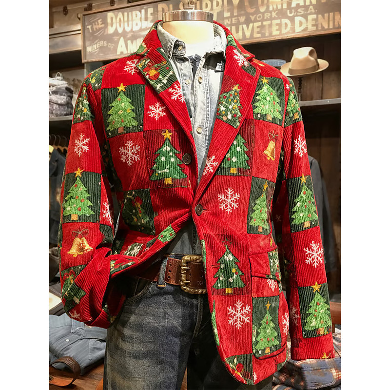 Men's Corduroy Jacket Christmas Party Special Occasion Pocket Christmas Fall Winter Terylene Corduroy Graphic Christmas Snap Button Comfy Single Breasted Two-button Blazer Red Green