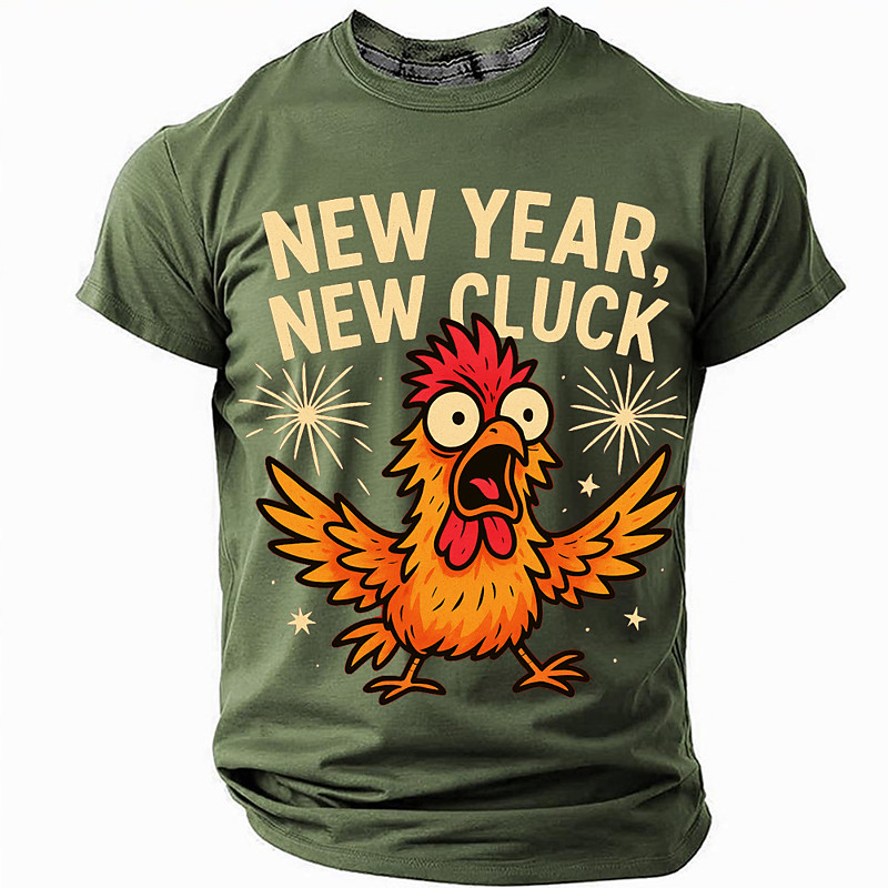 New Year New Cluck Funny Chicken Shirt, Chaos Meme Rooster Party Graphic Tee for Men, Holiday Humor T-shirt Gift, Clothing Apparel S M L XL XXL XXXL