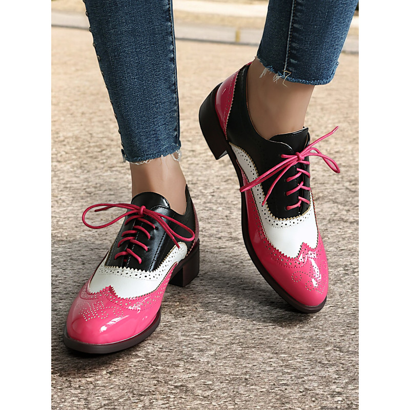 Women's Pink and Black Brogue Shoes – Vintage Inspired Faux Leather Lace-Up Oxford Shoes for Valentine's Day, Retro Style and Casual Outfits