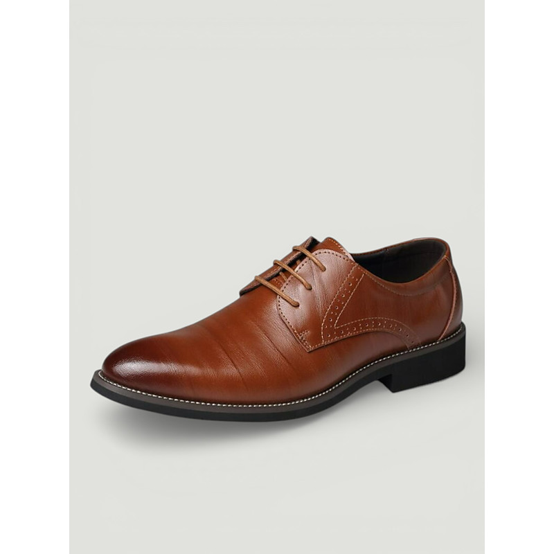 Men's Brown Perforated Leather Lace-Up Shoes – Stylish Casual and Business Shoes for Everyday Wear