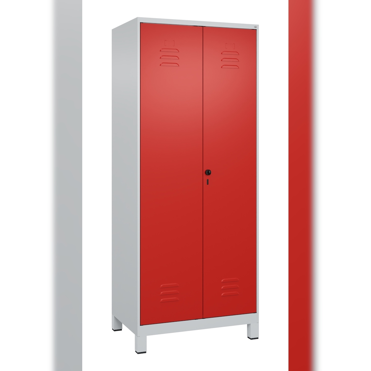 C+P Doppel-Spind Classic PLUS, Füßen, 2 Abteile, HxBxT 195x80x50cm, Sicherheitsdrehriegel, Hellgrau/Rot von PROREGAL
