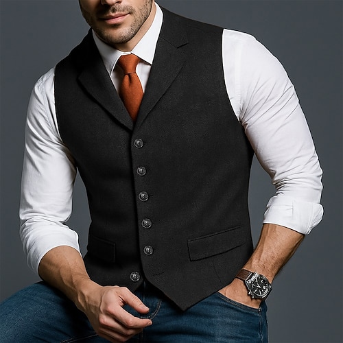 Da uomo Gilet in tweed Gilet Quotidiano Vacanza Matrimonio Formale Moda Classico Primavera Autunno Tasca Bottoni Tweed Poliestere Confortevole Semplice Spina di Pesce Monopetto Scollo a V Bavero