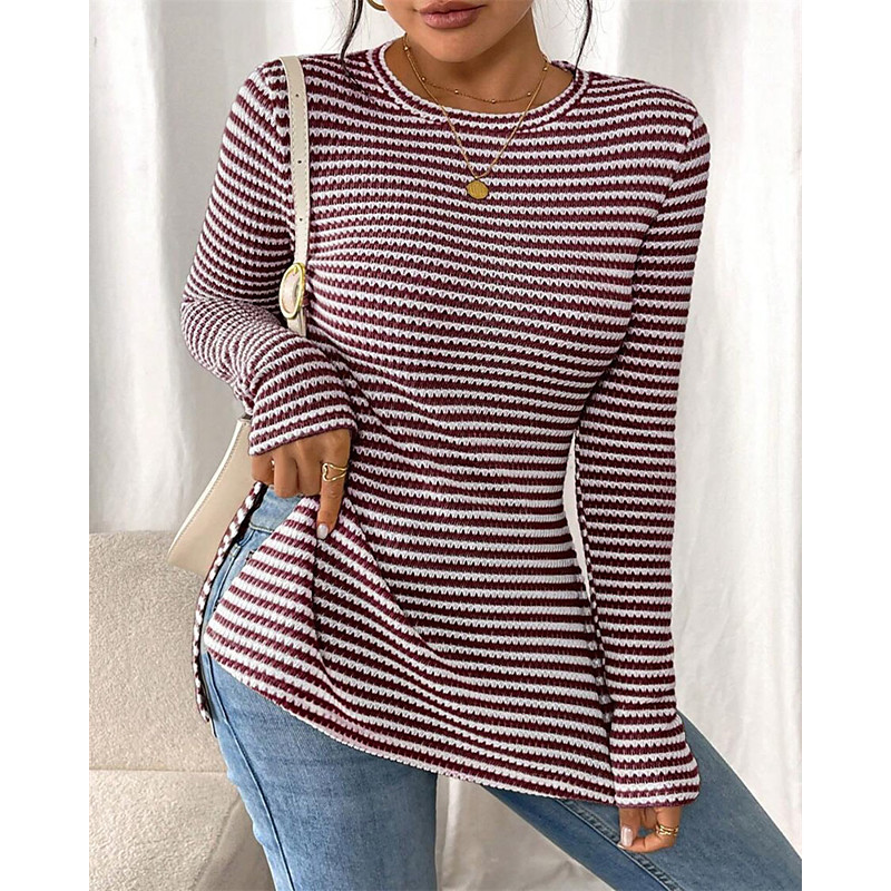 Women's Dressy Tops Solid Color Striped Elegant Cute Ladies Long Sleeve Crew Neck Regular Tops Work Daily Going out Tunic Draped Light Blue Black Wine Light Brown Apricot Fall Winter