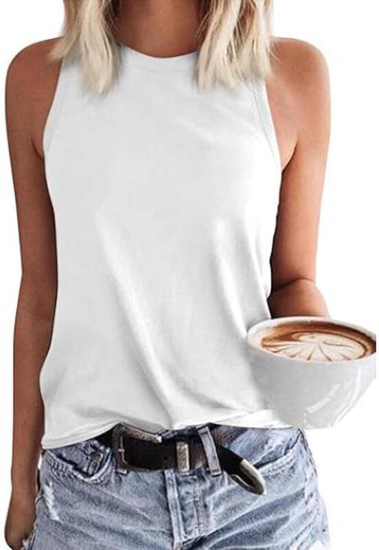 Women's Tank Tops Sleeveless Crewneck Shirts Summer Casual Basic Tops (white, L)