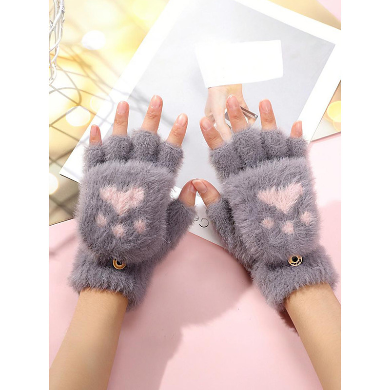 Women's Cat Paw Fuzzy Knit Fingerless Gloves – Soft Plush Fabric, Available in Multiple Colors, Perfect for Winter and Casual Wear.
