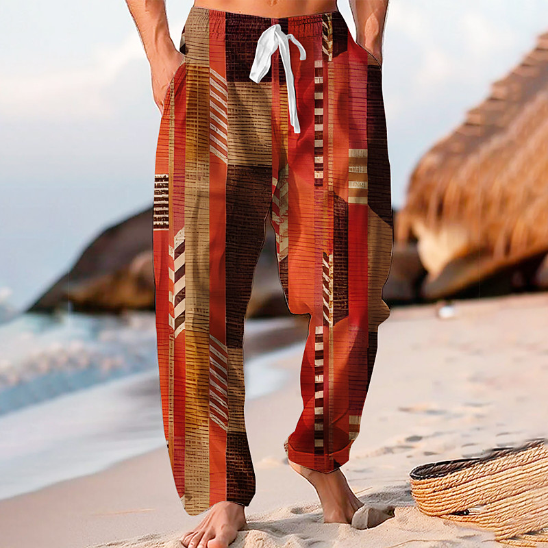 Men's Color Block Patchwork Trousers Baggy Pants Casual Pants Mid Waist Hawaiian Casual Outdoor Vacation Holiday Wide Leg Summer Spring 3D Print Blue Orange Brown