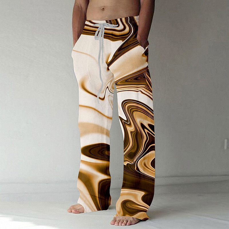 Men's Marble Abstract Liquid Art Trousers Baggy Pants Casual Pants Mid Waist Casual Outdoor Vacation Daily Drawstring Elastic Waist Wide Leg Summer Spring 3D Print Black Yellow Green
