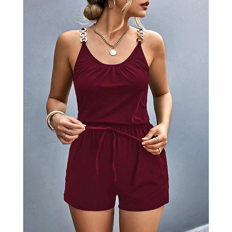 Women's Romper Active Solid Color Sleeveless Baggy Shorts U Neck Drawstring Pocket Daily Vacation Regular Fit Black Wine Green Summer