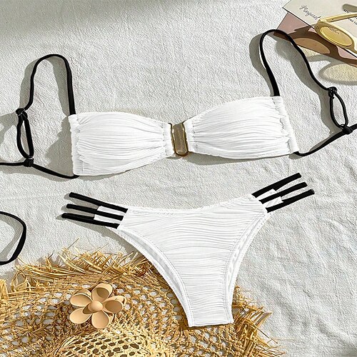 Per donna Costumi da bagno Bikini Due pezzi Birichino Costume da bagno Senza schiena Vacanza Abbigliamento da Spiaggia Tinta unica Collo a U Senza Maniche Costumi da bagno