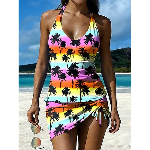 Per donna Costumi da bagno Tankini Gonna Costume da bagno Coulisse Elegante Vacanza Floreale Grafico Collo a U Senza Maniche Costumi da bagno