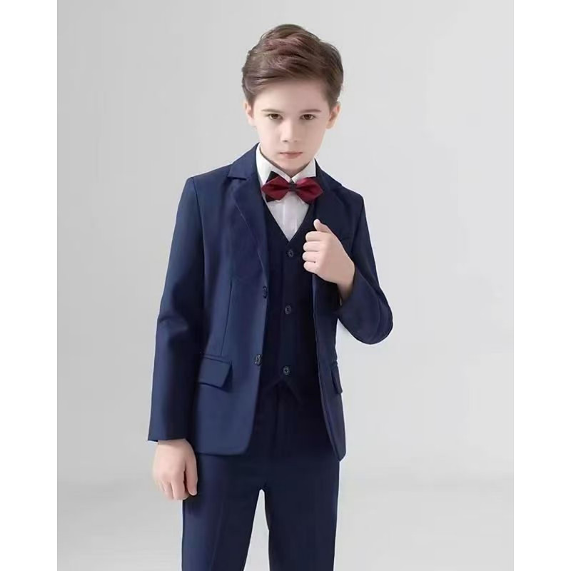 5 Pieces Ring Bearer Suit Boys' Kids Suit Blazer Vest Pants Shirt Tie Boy's Formal Suit Casual Outdoor Party Fashion Cool Basic Solid Color Pocket Buttons Black Navy Blue Polyester