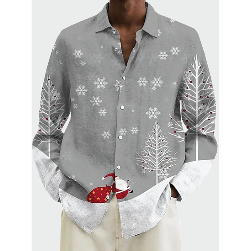 Christmas Men's Christmas Scene Printed Shirts Shirts Santa Claus Elk Turndown Green Blue WhiteGray Dusty Blue Red 3D Print Outdoor Long Sleeve Button-Down Print Clothing Apparel Fashion Designer