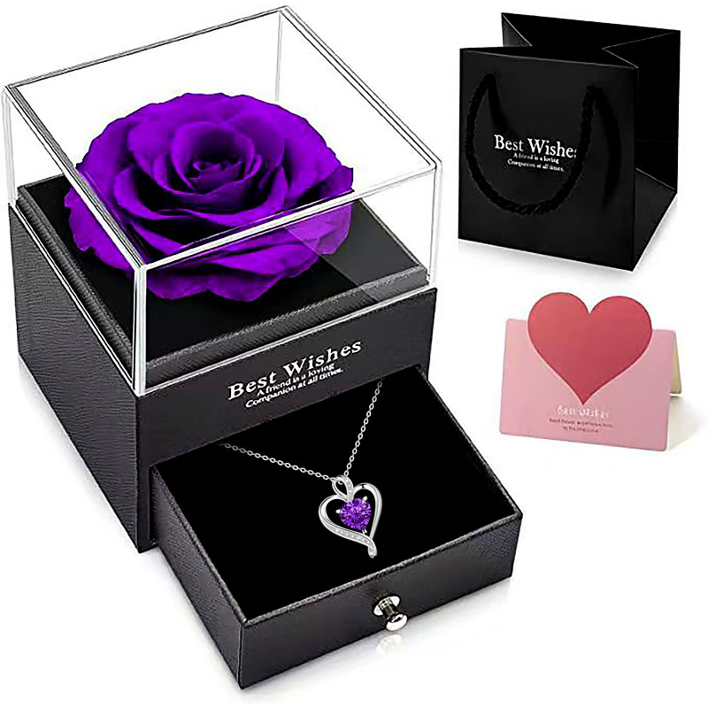 Preserved Flowers Gift for Mom from Son or Daughter, Incl 4 Rose and Heart Necklace, Ideal Gifts Birthday, Mother's Day, Valentine's Day, Christmas for Grandma for Her, Women, Wife