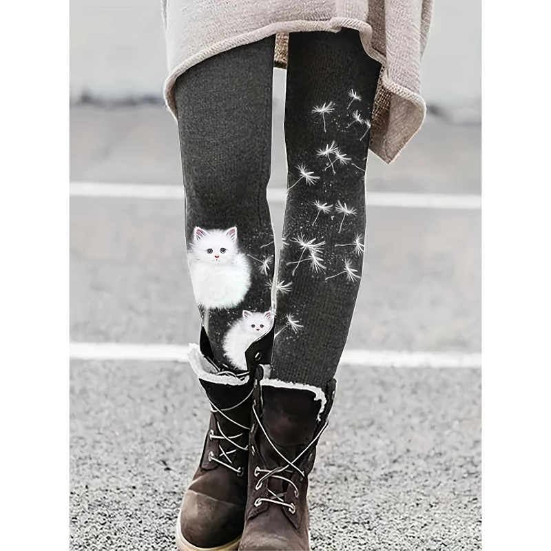 Women's Leggings Punk Active Vacation Ankle-Length High Waist Graphic Animal Cat 3D Print Quick Dry Breathability Soft Stretchy Outdoor Home Causal Black White Rainbow Gray Fall Skinny