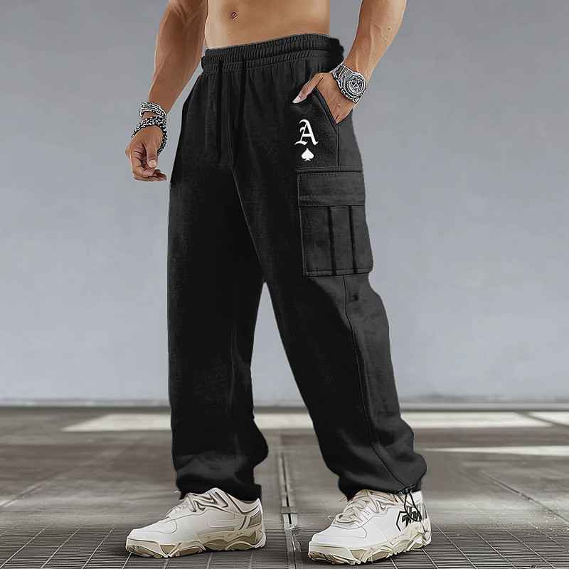 Men's Letter Printed Cargo Pants Cargo Sweatpants Joggers Mid Waist Casual Athletic Hiking Workout Elastic Drawstring Waist Open Bottom Tactical Pants with Pockets Spring Fall 3D Print Black White
