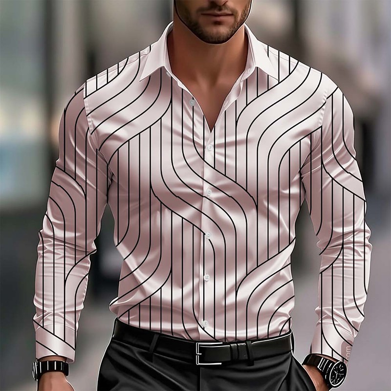 Men's Geometric Pattern Waves Abstract Art Shirt Satin Shirt Dress Shirt Long Sleeve Business Casual Vacation Dailywear Summer Spring Fall Turndown 3D Print Button Up Shirts Blue Black White Yellow
