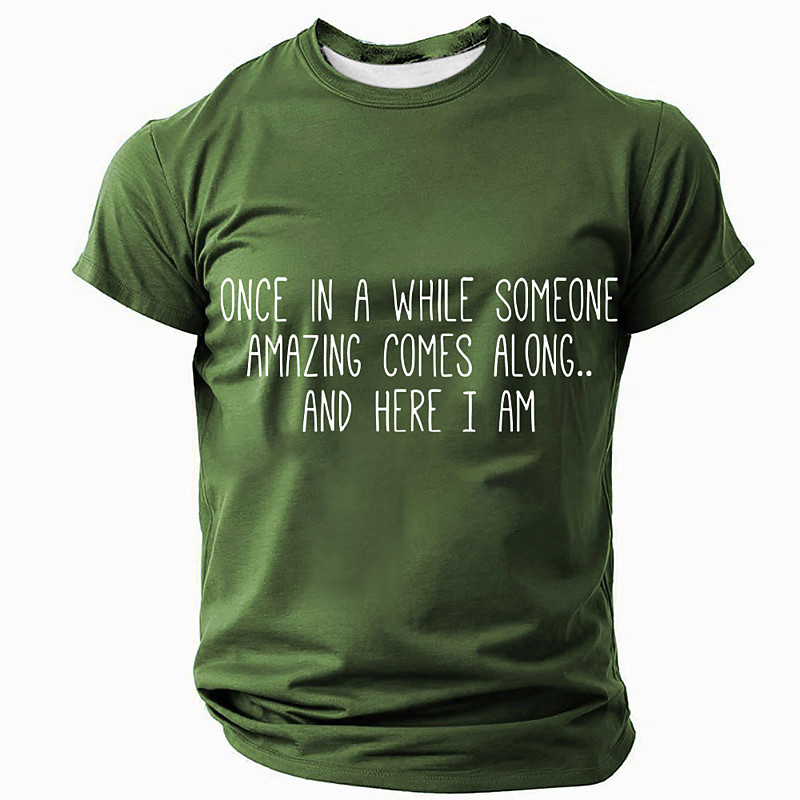 Men's Red Funny Graphic T-Shirt - 'Once In A While Someone Amazing Comes Along.. And Here I Am' Short Sleeve