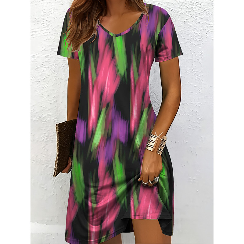 Women's Mini Dress Knit Dress Casual Dress T Shirt Dress Tee Dress Sundress Elegant Vacation Casual Beach Regular Fit Graphic Geometric Abstract Short Sleeve V Neck Black And White Yellow Pink Blue