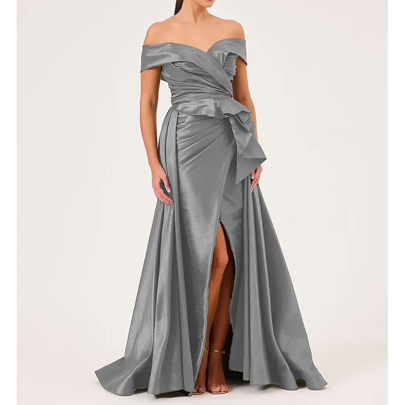 A-Line Floor Length Evening Gown Ball Gown with Overskirt Formal Dress Celebrity Style Sleeveless Off Shoulder Garden Party Wedding Nylon Stretch Satin with Pleats Ruched Ruffles