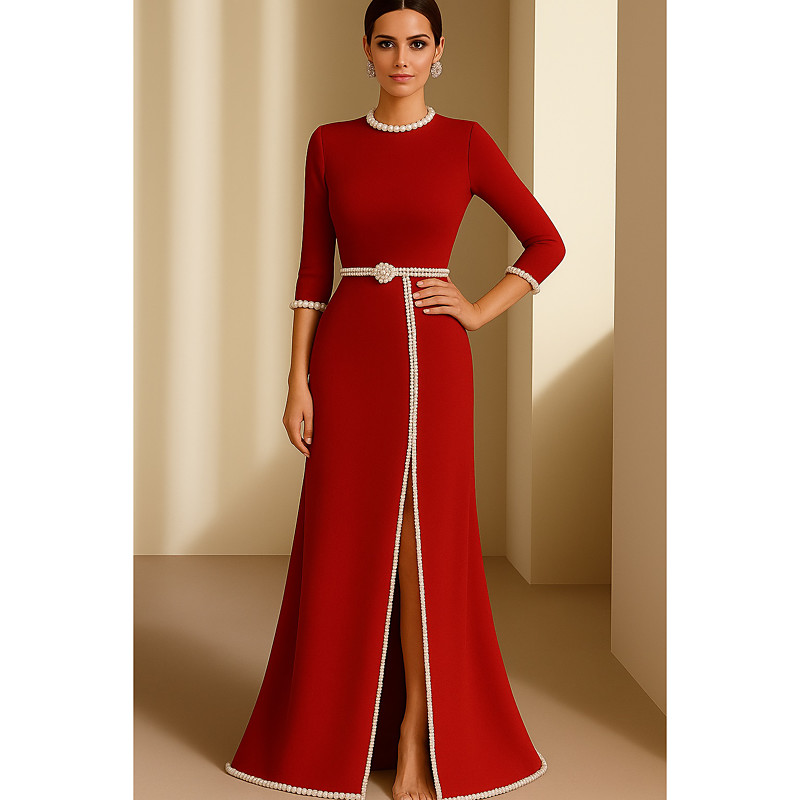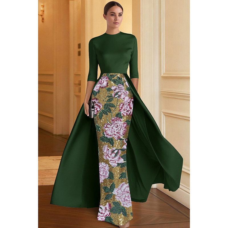 Sheath Column Floor Length Prom Dresses Evening Gown Ball Gown Formal Dress Elegant Vintage Silky 3/4 Length Sleeve Crew Neck Wedding Formal Stretch Crepe with Pearls