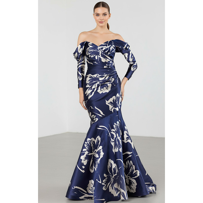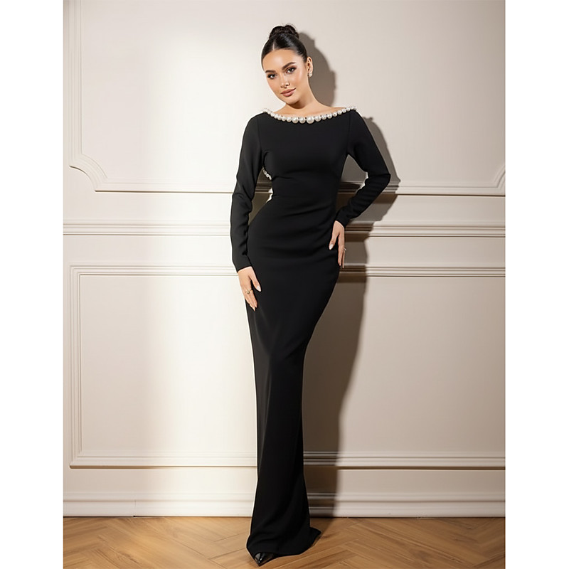 Mermaid Trumpet Floor Length Prom Dresses Evening Gown Ball Gown Formal Dress Elegant Vintage Long Sleeve Boat Neck Wedding Formal Stretch Crepe with Pearls
