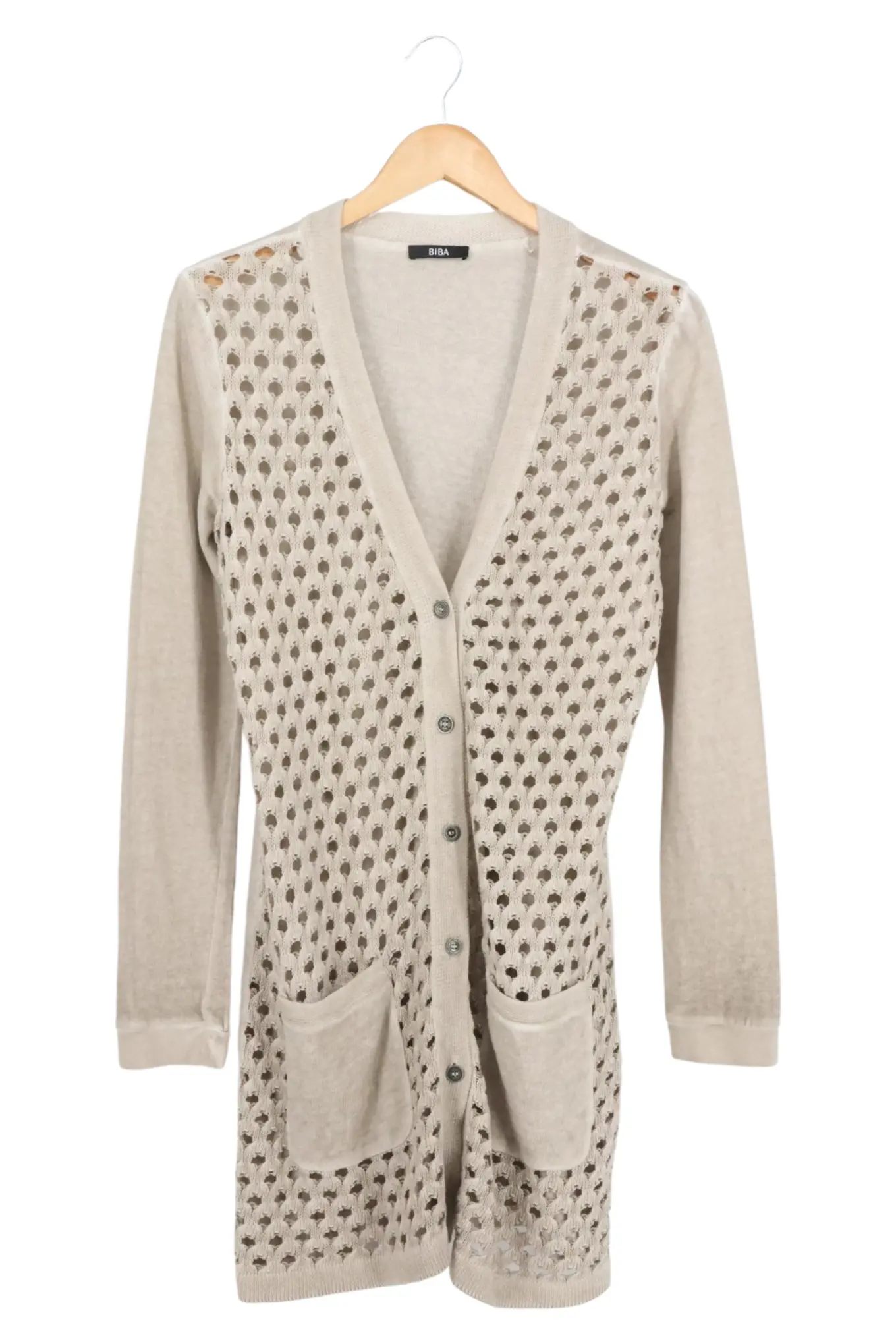 BIBA Strickjacke Damen Gr. S Beige Langarm Vintage-Look