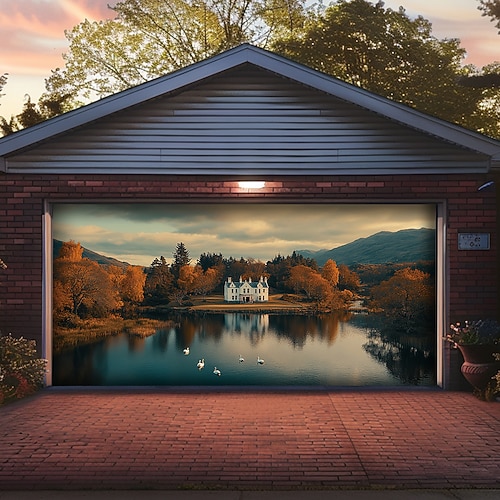 Copertura per porta del garage Grande appeso Lago 森林 Rustico 3D Pittoresco Da serata All'aperto Sfondi di ripresa Porta d'ingresso Arredamento per la casa