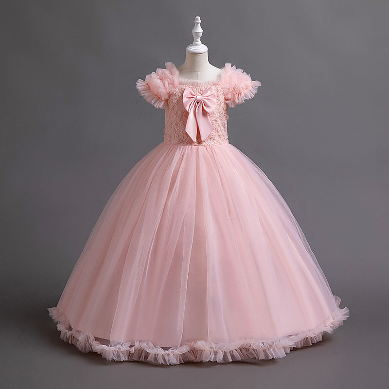 Flower Girl Dress Girls' Formal Dress Wedding Attire Party Wedding Formal Adorable Princess Beautiful Patchwork Mesh Solid Color Short Sleeves Crew Neck Champagne Pink 4 years