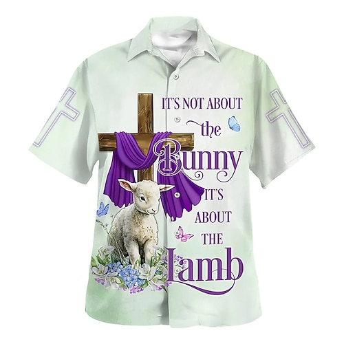 Ostern Herren Hase Kreuz der Templer Lamm Hemd Lässiges Hemd Knopfhemd Kurzarm Vintage-Retro Urlaub Festtage Festival Sommer Frühling Umlegekragen 3D-Druck Hemden mit Kragen Hellgrün