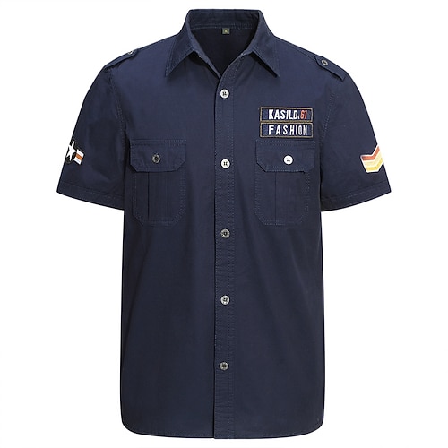 Men's Shirt Summer Shirt Casual Shirt Button Up Shirt Cargo Shirt Black Blue Green khaki Army Green Short Sleeve Plain Shirt Collar Vacation Hawaiian Pocket Clothing Apparel 100% Cotton Fashion