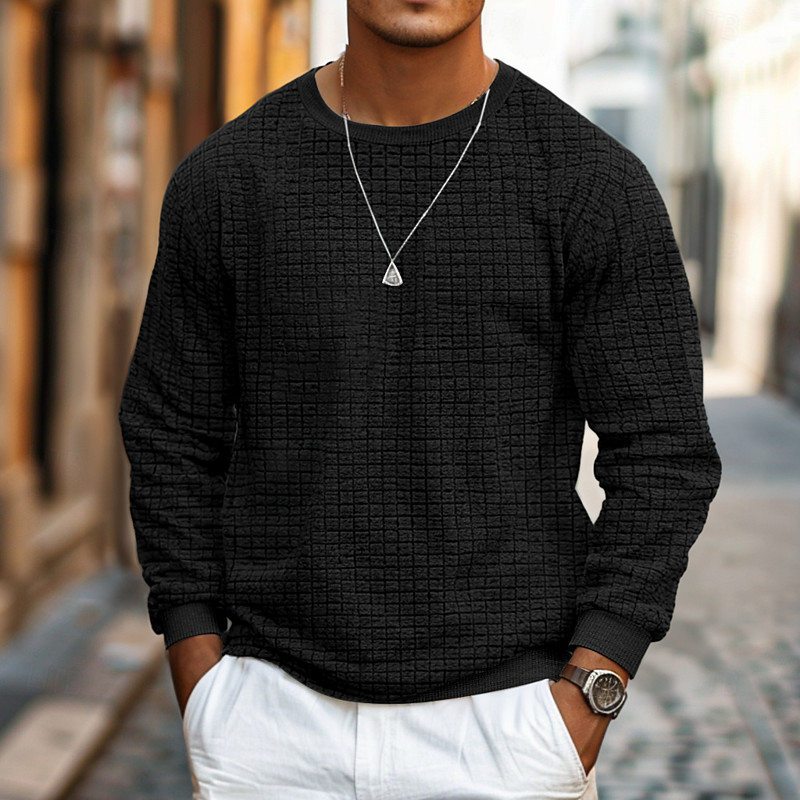 Men's Waffle T-shirt T Shirt Long Sleeve Crewneck Winter Spring Fall Solid Color Traditional / Vintage Crewneck Outdoor Home Sports Outdoor Army Green Dark Grey Black Top Tee for Men