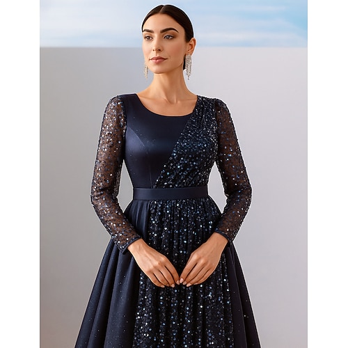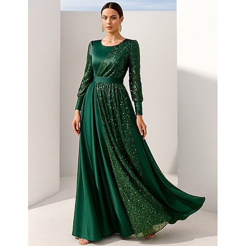 Abito da invitata al matrimonio in linea A lunghezza sul pavimento abiti formali abito da sera abito per la madre della sposa manica lunga collo a giro elegante vintage scintillante e brillante