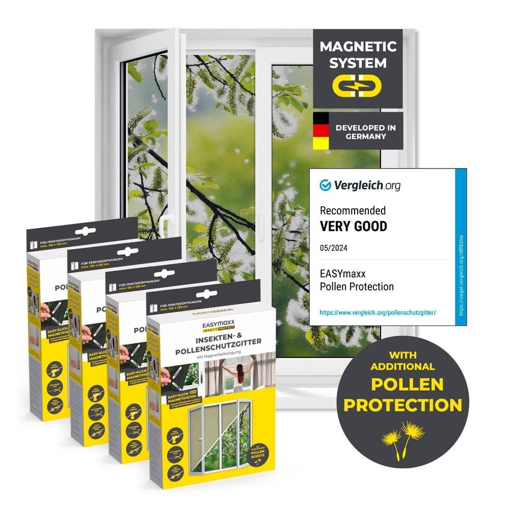 EASYmaxx Moskitonetz mit Pollenschutz mit Magnetbefestigung fürs Fenster - 150 x 130 cm - grau - 4er-Set