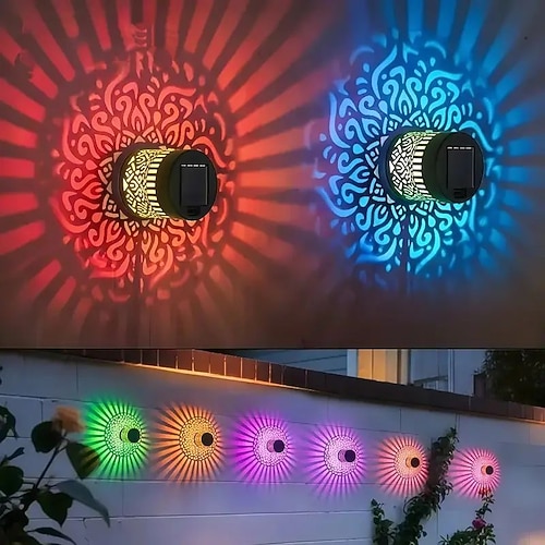 1/2 PCS Luce da Parete LED Solare Luce da Giardino da Esterno IP65 Waterproof Lanterna Metallica Luce Calda Bianca o Modalità Cambiante per Villa Giardino Cortile Matrimonio Holiday Decorazione