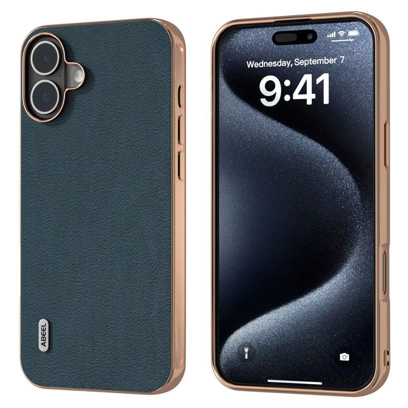 ABEEL Mobilskal till iPhone 16 Plus Electroplating Äkta Läder Grön