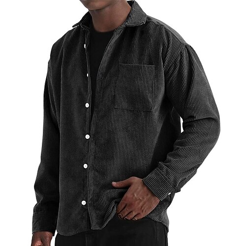 Per uomo Camicia Camicia Estiva Camicia casual Camicia da Spiaggia Camicia di Velluto a Coste Camicia con Bottoni Nero Bianco Verde chiaro Rosso Blu marino Manica Lunga Tinta unica Bavero Vacanza