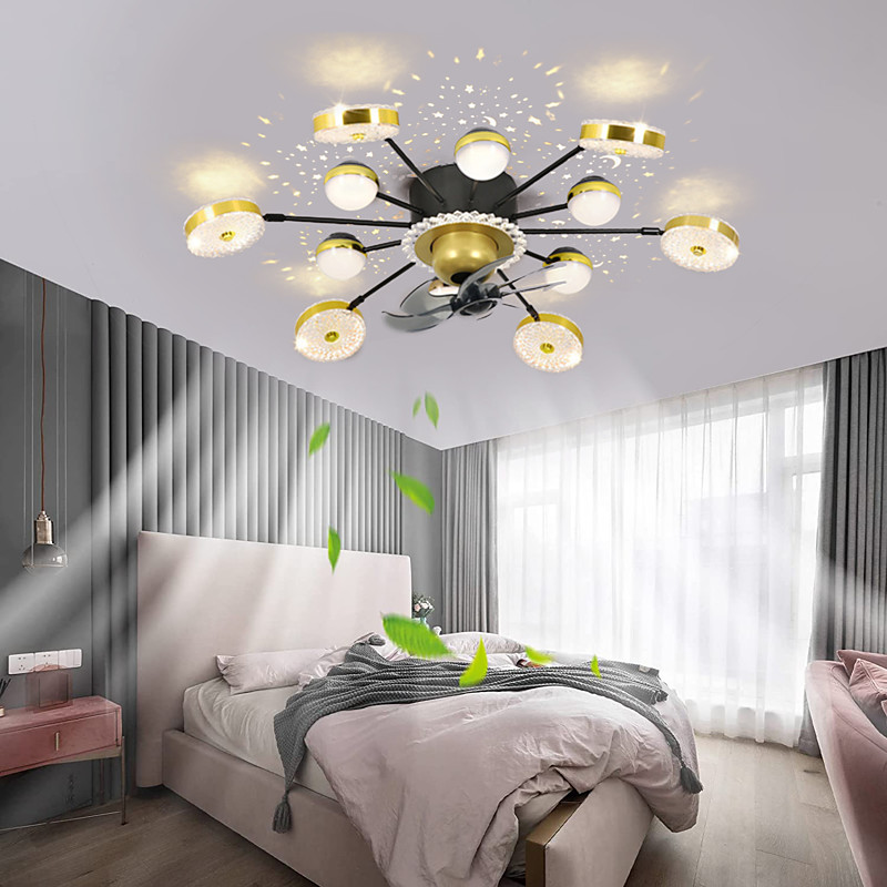 Ceiling Fan with Light App Remote Control 102 cm Dimmable 6 Wind Speeds Sputnik Design Projection Modern Ceiling Fan for Bedroom, Living Room, Small Room 110-240V