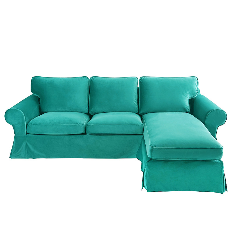 EKTORP 3-Seater Sofa with Chaise Longue Cover, Solid Color Quilted Velvet Slipcover, Durable Non-Slip Protector for Living Room