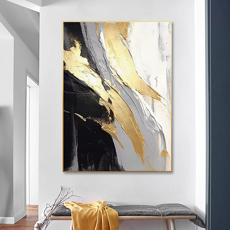 Abstract Gold Foil Feather Canvas Hand painted Oil Painting Modern Home Decor Nordic Living Room Bedroom Decoration Pictures Wall Decor No Frame