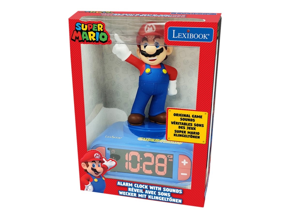 Digitalt vækkeur med 3D Super Mario figur, lys og lyd.
