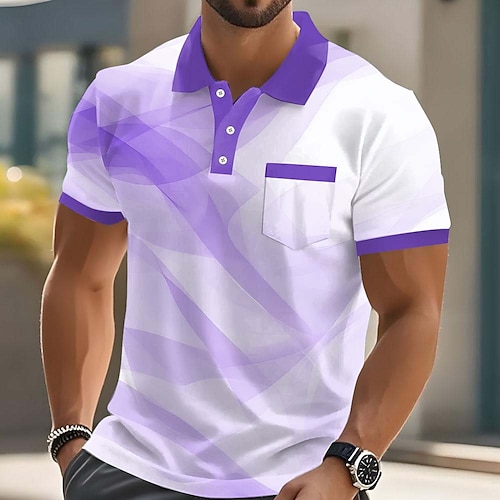Herren Geometrisch Poloshirts Kurzarm Polo-Shirts Hemden mit Kragen Business-Casual Outdoor Athleisure Alltagskleidung 3D-Druck Knöpfe Frühling Sommer Blau Rote Purpur