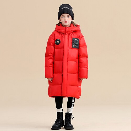 Kinder Mädchen Daunenjacke Daunenjacke Einfarbig Sport Tasche warm halten Winddicht Outdoor Mantel Oberbekleidung 5-12 Jahre Winter Blau Schwarz Rote