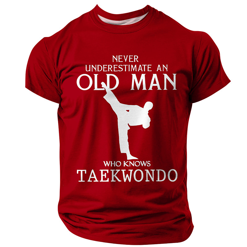 Men's Taekwondo Graphic T-Shirt - Never Underestimate An Old Man Who Knows Taekwondo Short Sleeve Tee