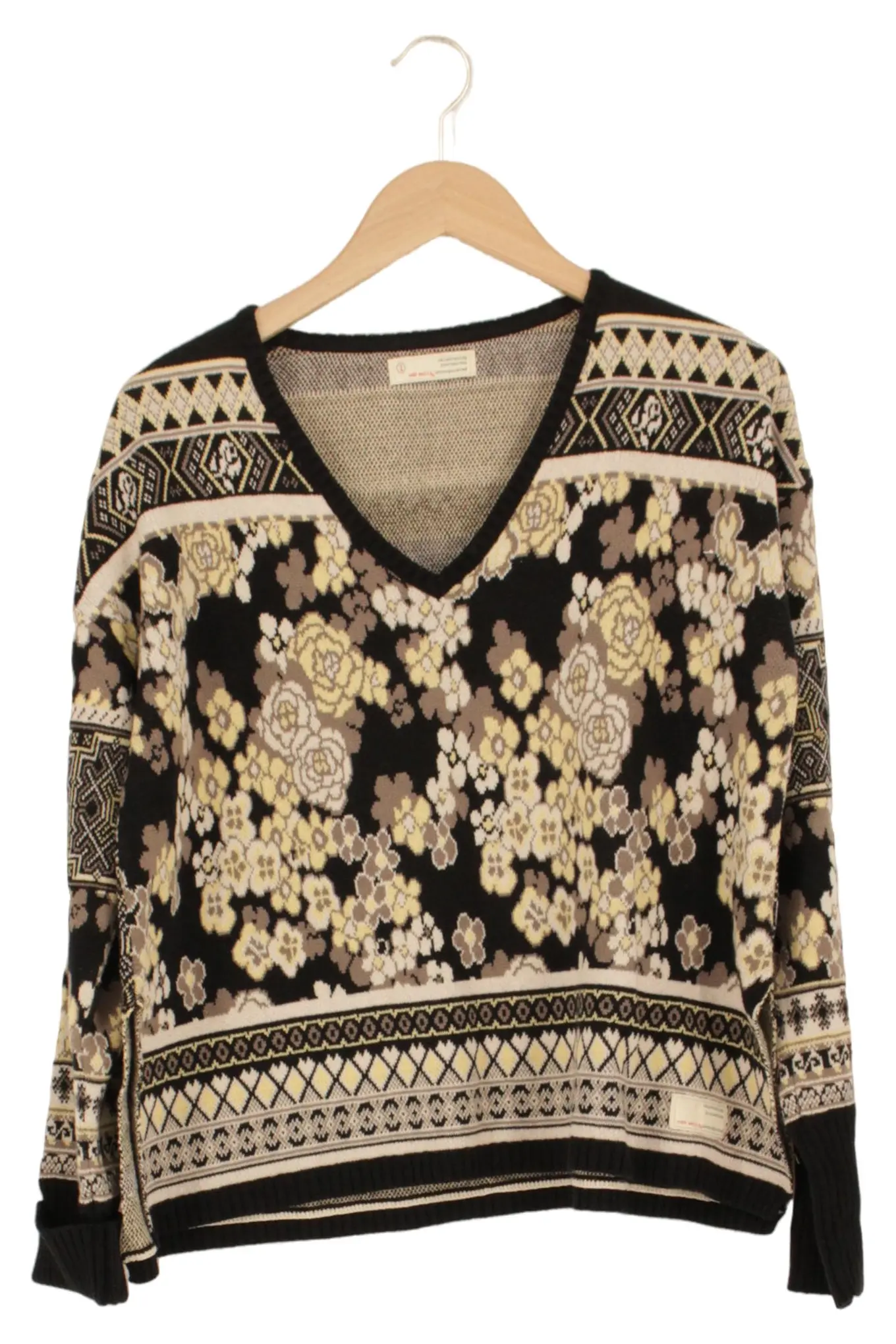ODD MOLLY Damen Pullover S Schwarz Beige Muster