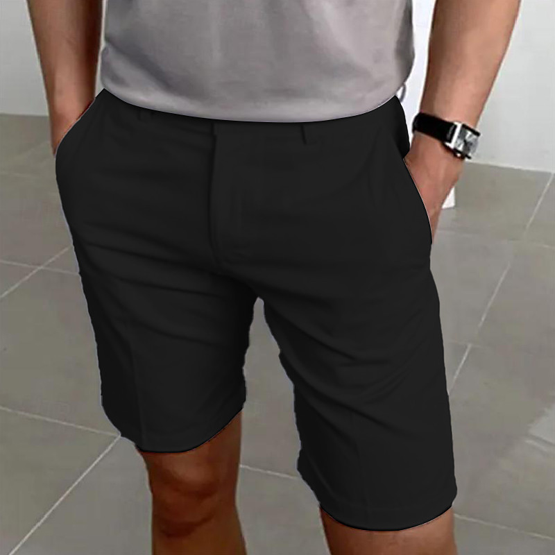 Men's Shorts Summer Shorts Work Shorts Buttons Pocket Plain Comfort Short Holiday Beach Weekend Fashion Casual Black White Micro-elastic