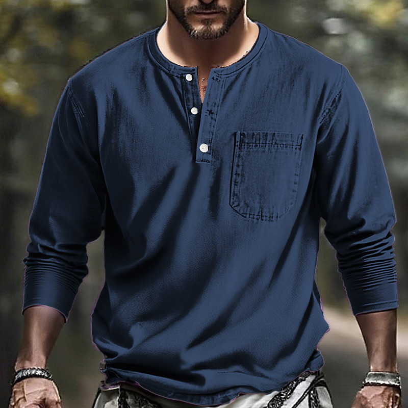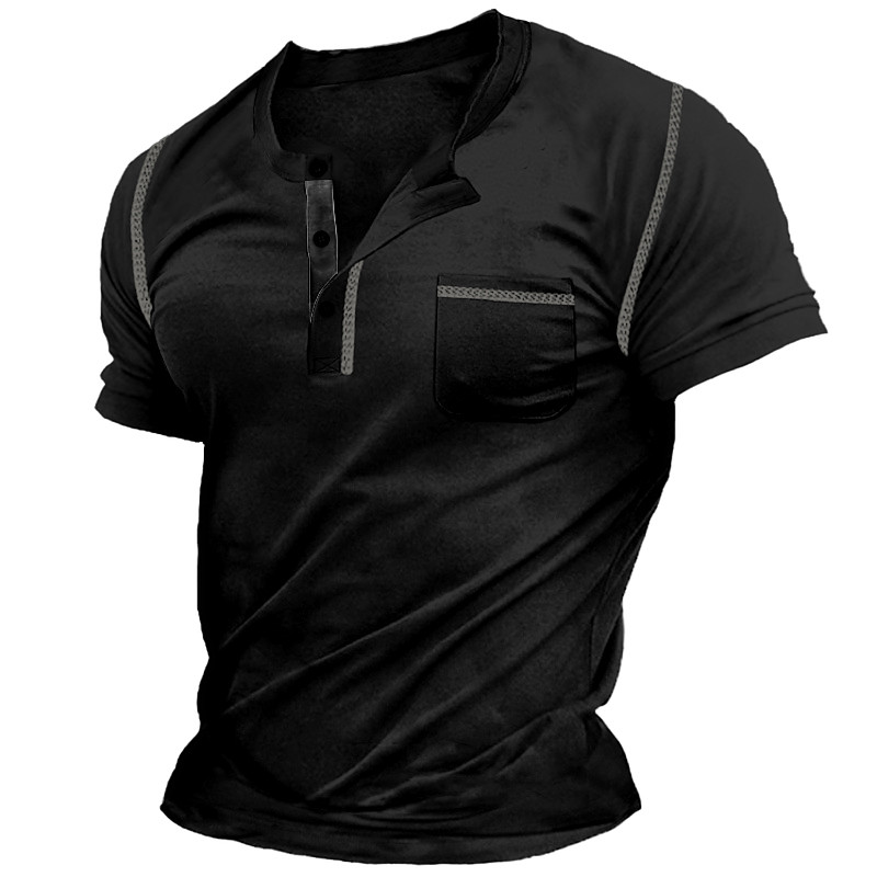 Men's Henley Shirt Tee Top Plain Henley Street Vacation Short Sleeves Pocket Vintage Style Clothing Apparel Fashion Designer Basic