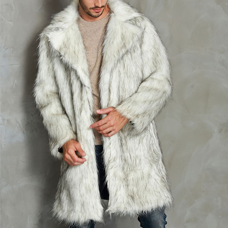 Men's Winter Coat Faux Fur Coat Vacation Daily Thermal Warm Fleece Winter Plain Fashion Streetwear Lapel Long White Jacket